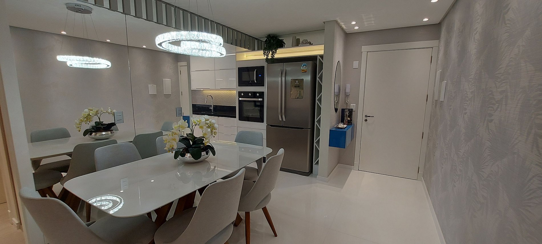 O espaço foi projetado pensando nos mínimos detalhes de conforto e bem estar: * Cozinha totalmente equipada com eletrodomésticos de alto padrão, cooktop, micro-ondas, forno elétrico, coifa, geladeira French door inverter, liquidificador, sanduicheira, adega, cafeteira elétrica, louças, panelas, travessas, bancada de apoio pra café com banquetas, churrasqueira com grelha. *Lavanderia com máquina lava e seca, sacada externa aberta , varal pra roupas, armário com ferro de passar, tábua de passar. *Sala de Jantar e estar integradas, com uma decoração requintada, piso porcelanato, iluminação automatizada por controle, mesa de jantar para 6 pessoas, sofá com chaise, TV 50`smart, cortinas com blackout, ar condicionado quente'/frio, sacada externa aberta com vista para a cidade e vale dos vinhedos. *Quarto 1 sendo suíte, com cama de casal 1,50x1,88, colchão especial magnético e massageador, dando conforto e descanso . Roupas de cama e banho buddemeyer, cobertores, guarda roupa com portas de correr, TV 32`smart, ar condicionado quente/frio, iluminação aconchegante. *Banheiro Suíte com ducha , finamente decorado com cuba, toalheiro, saboneteira e lixeira automatizada. *Quarto 2 com cama de casal viuva 1,28x1,88, roupas de cama e banho buddemeyer, cobertores, guarda roupa com portas de correr, TV 32`smart, ar condicionado quente/frio, iluminação. *Banheiro social com ducha, iluminação especial, móvel com cuba e decoração. *Prédio com área de lazer na cobertura, com espelho d`'agua, espreguiçadeira, playground, vista para o vale dos vinhedos . Dois elevadores de acesso , 02 vagas de garagem, sendo uma exclusiva para camionete ou carros de grande porte, fechada e coberta no próprio condomínio.