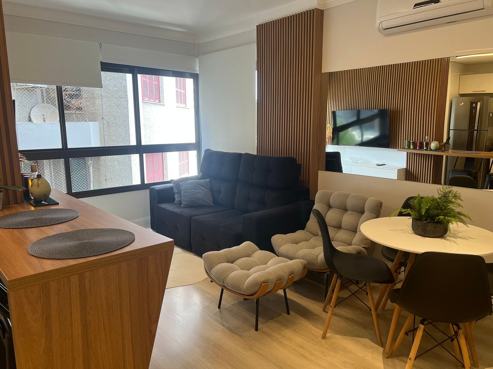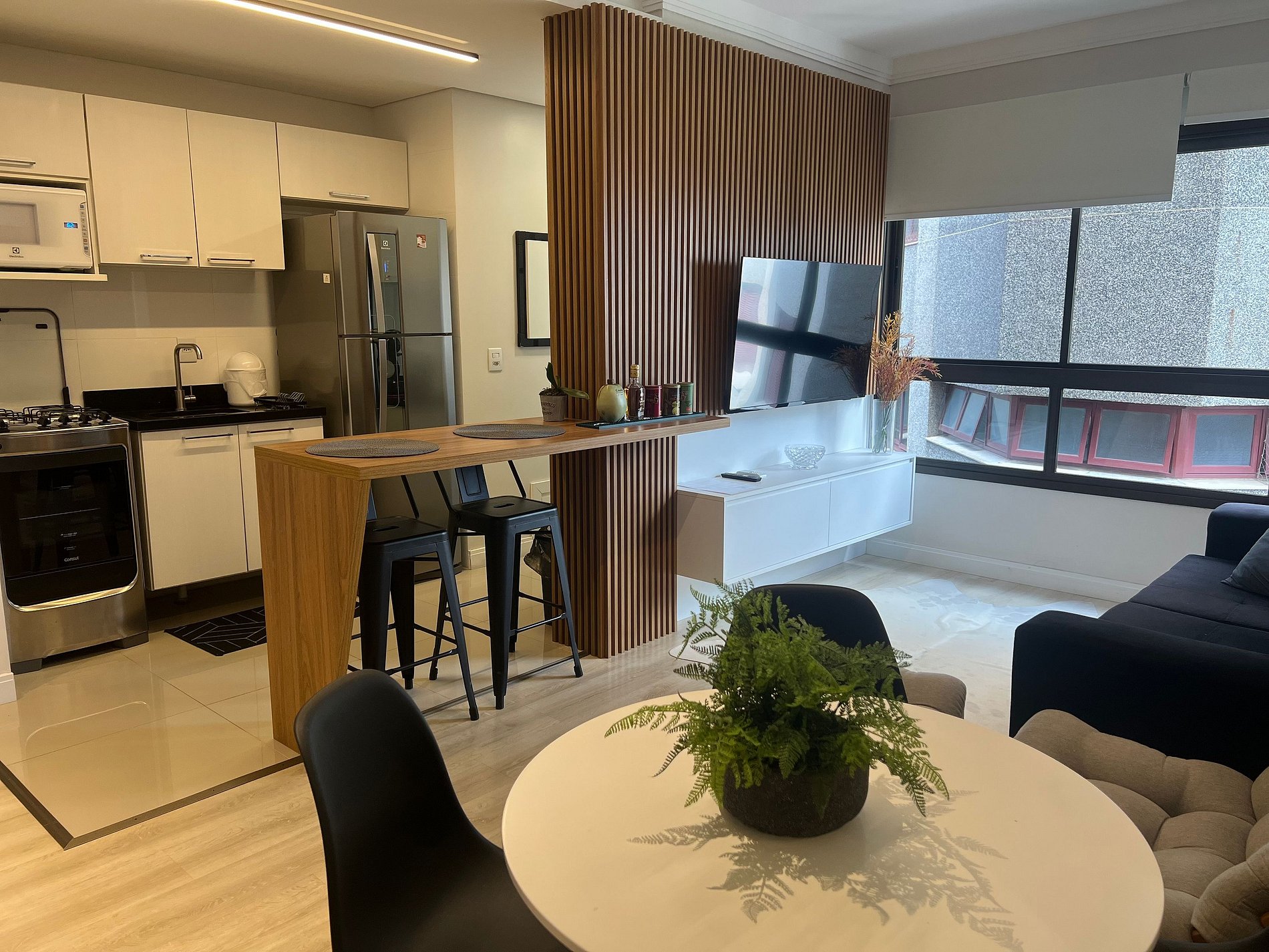 Este espaço está localizado próximo aos principais pontos turísticos da cidade, a 200 metros da Fonte do Vinho e dos principais shoppings, e a apenas 5 a 10 minutos do Vale dos Vinhedos. Aqui você pode planejar sua estadia com facilidade na capital do vinho. O apartamento oferece todas as comodidades: ar-condicionado, cafeteira Dolce Gusto, churrasqueira, TVs na sala e no quarto, geladeira, fogão, louça completa, chuveiro, secador de cabelo, ferro de passar roupa e muito mais.
