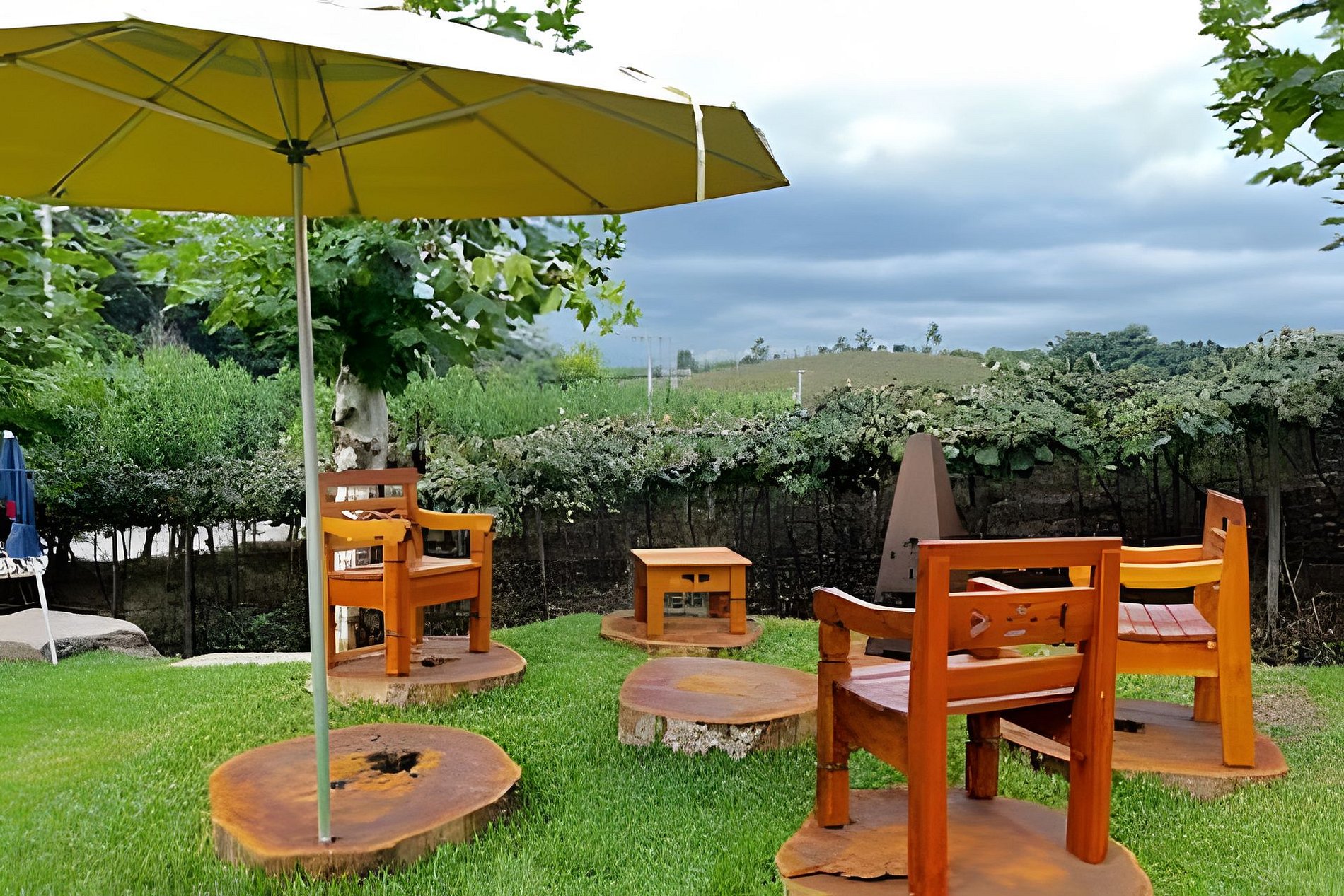A propriedade conta com outras cabanas e um casarão no terreno, mantendo o conceito de hospedagem exclusiva em meio aos vinhedos. Cada unidade tem sua privacidade. O espaço externo é amplo e integrado à natureza, podendo ser compartilhado com outros hóspedes, proporcionando uma experiência tranquila e harmoniosa.