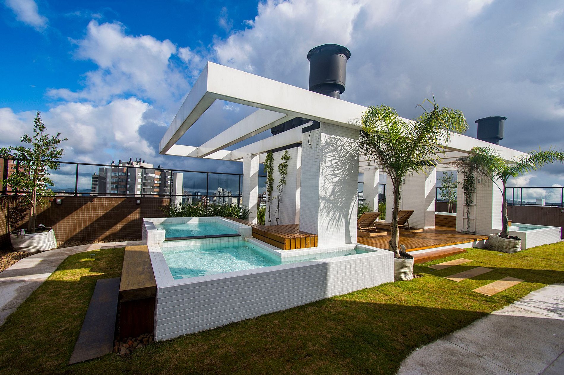 ▷ O terraço do prédio é uma linda área comum, com espelho d’água, espreguiçadeiras, espaço kids, uma vista deslumbrante e um pôr do sol incrível, disponível para os hóspedes relaxarem e aproveitarem. ▷ Vaga de garagem coberta e fechada (28).
