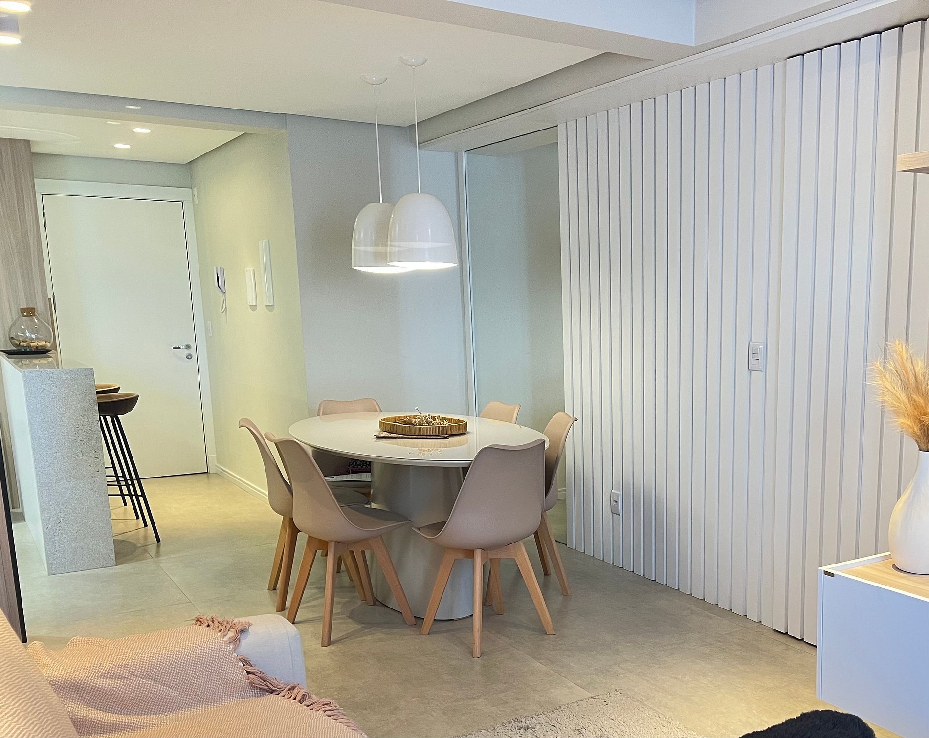 Desfrute de uma estadia pensada em cada detalhe para o seu conforto: ▷ Cozinha americana totalmente equipada com cooktop, micro-ondas, forno elétrico, coifa, chaleira elétrica, cafeteira Nespresso, cafeteira tradicional, pipoqueira, geladeira, liquidificador, sanduicheira, copos, taças de cristal, decanter para vinho, pratos, talheres e demais utensílios. ▷ Sala de estar e jantar integradas, finamente decoradas, com sofá confortável, mesa de jantar para 6 pessoas, Wi-Fi, televisão de 55 polegadas com Netflix, ar-condicionado split inverter quente e frio e adega climatizada para vinhos. ▷ Quarto 1: cama tamanho queen, roupas de cama em fio egípcio da marca TRUSSARDI, toalhas de banho TRUSSARDI, guarda-roupa espaçoso com cabides, ar-condicionado split inverter quente e frio. ▷ Quarto 2: cama de casal, roupas de cama em fio egípcio da marca TRUSSARDI, toalhas de banho TRUSSARDI, guarda-roupa espaçoso com cabides, ar-condicionado split inverter quente e frio. ▷ Banheiro: o apartamento possui 1 banheiro, com aquecimento a gás, chuveiro de alta pressão e secador de cabelo. ▷ Lavanderia equipada com máquina lava e seca, ferro e tábua de passar roupas.