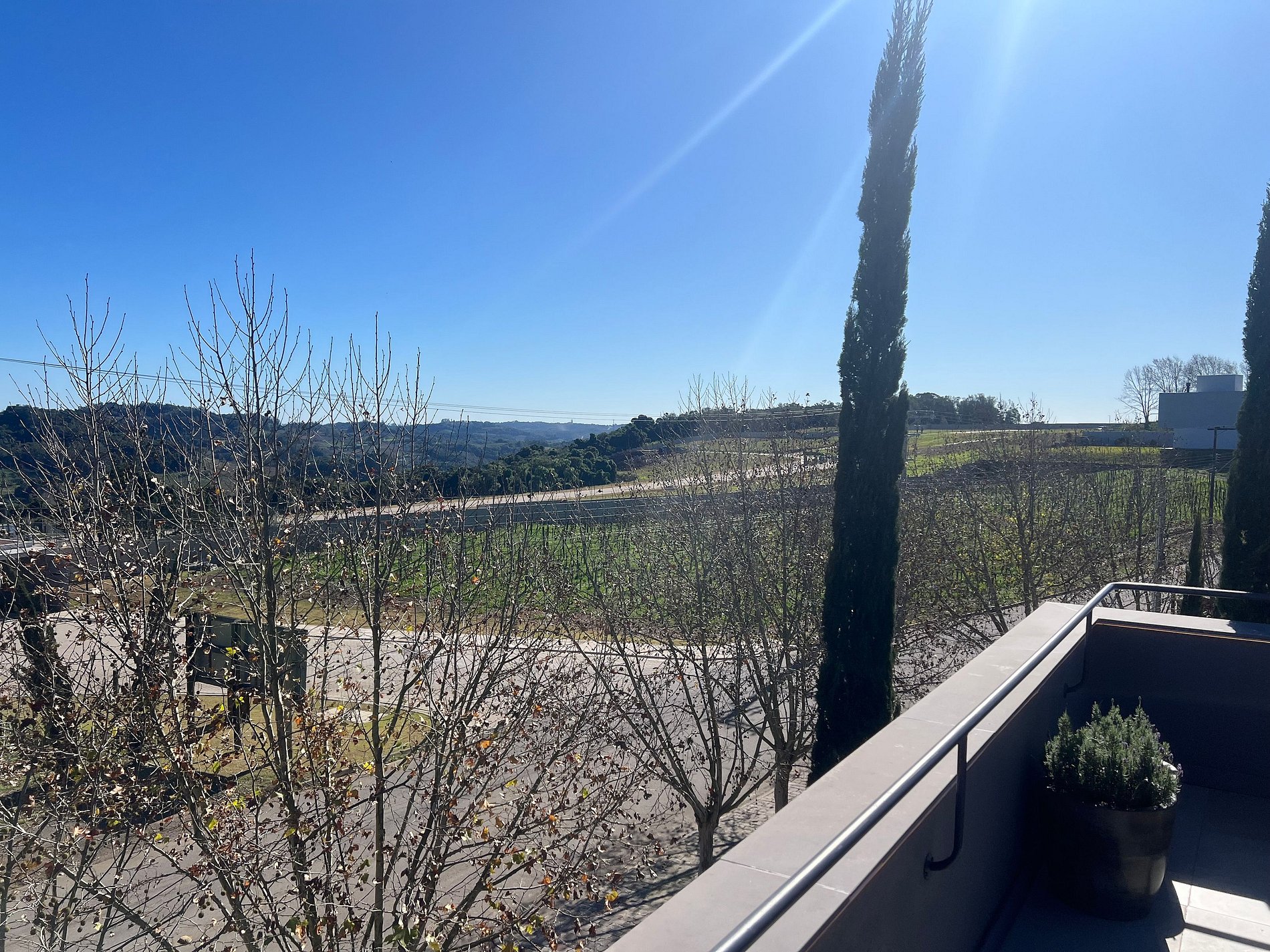 O grande destaque é um amplo terraço privativo com vista para vinhedos, além de toda a estrutura de alto padrão e charme. Inserido na área residencial mais valorizada da região, cercada por elegante condomínio, o apartamento oferece fácil acesso, segurança, silêncio e uma vista deslumbrante para os vinhedos. O estacionamento é gratuito.