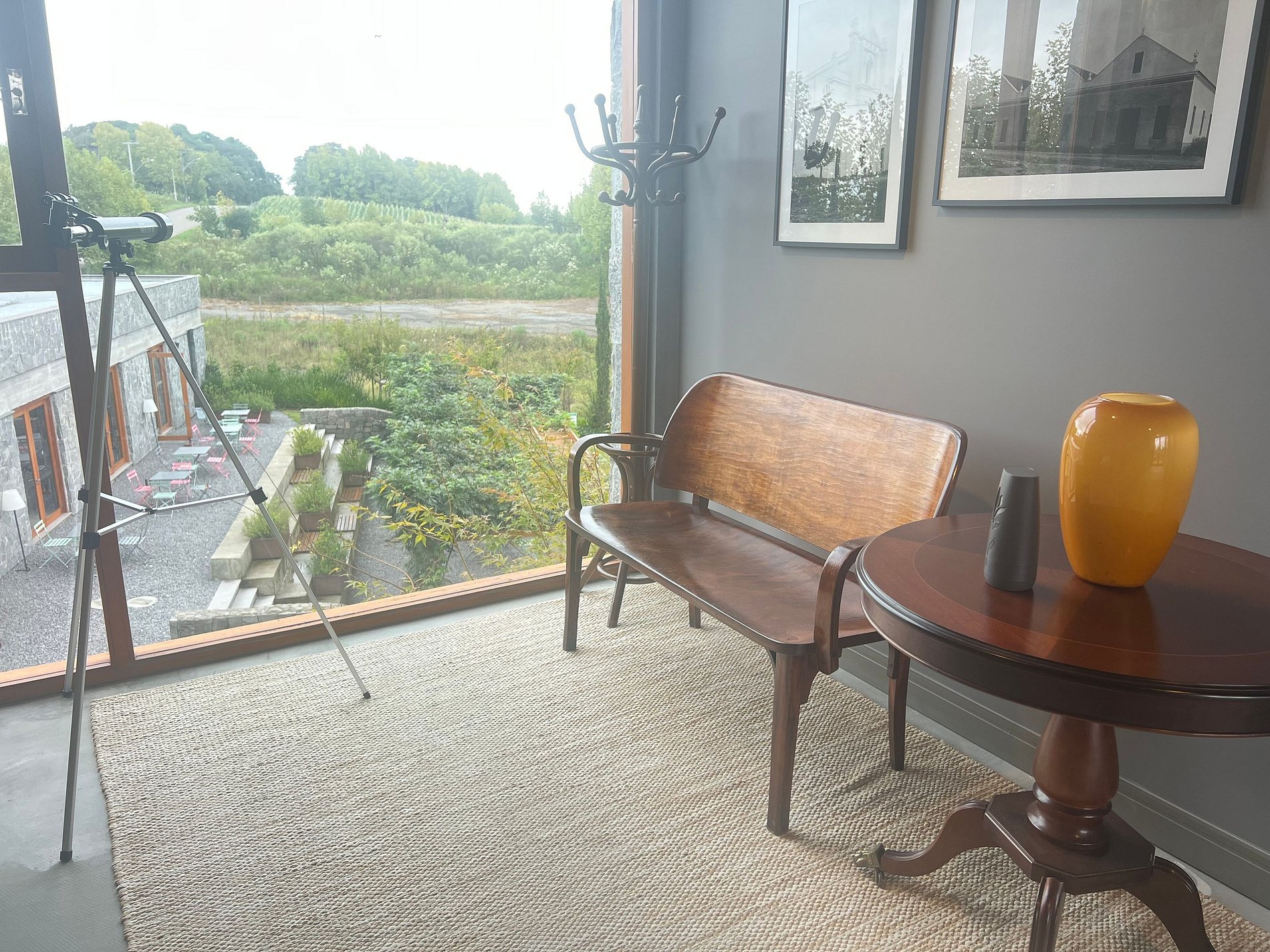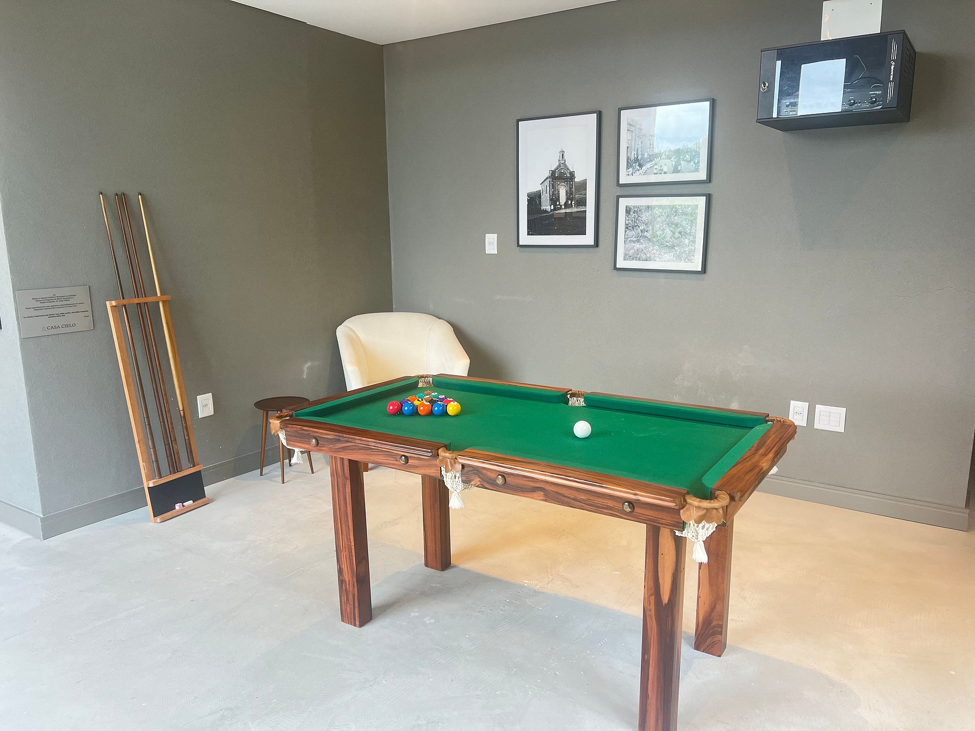 Espaço de Convivência Os hóspedes desfrutam de total privacidade e têm acesso às áreas de estar comum disponíveis para as três unidades da Casa Cielo. São elas : Área de estar de uso exclusivo dos apartamentos Primo e Secondo Cielo, decorada com móveis de design brasileiro das décadas de 60 e 70, cuidadosamente restaurados Área de estar comum no primeiro andar com lareira, móveis design e mesa de sinuca jardim do complexo Visa Vino playground Mais do que se hospedar, é viver o Vale dos Vinhedos com privacidade, conforto e paisagem.